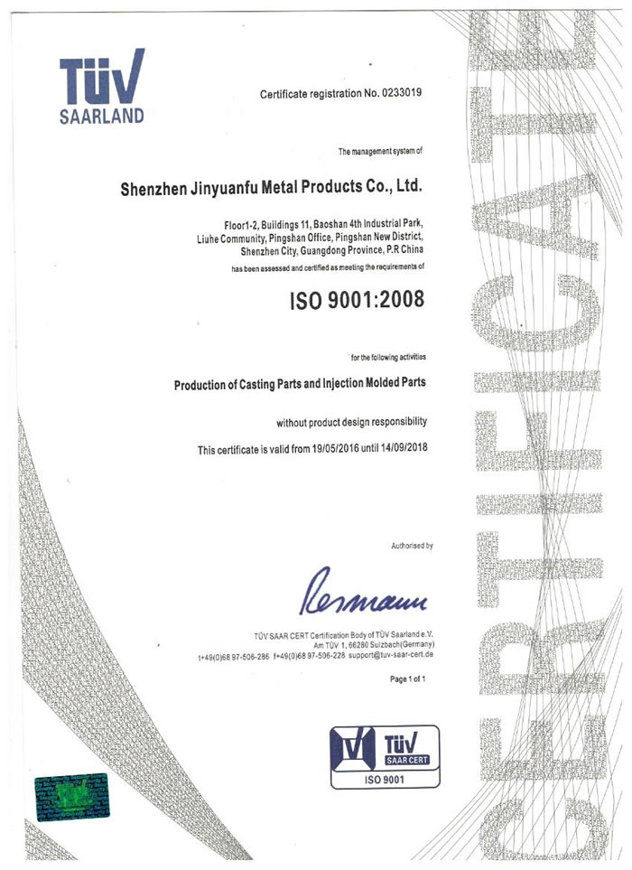 深圳市金源福五金制品有限公司成立于2003年。公司擁有8000多平方米生產(chǎn)廠地、開發(fā)與管理精英人才、技術(shù)專業(yè)、設(shè)備精良、交通便利、服務(wù)周全、具體設(shè)計、開發(fā)、制模、出樣、生產(chǎn)到成品出貨一體化模式生產(chǎn)廠家。已通過ISO9001:2008ISO1440/TS16949:2009國際質(zhì)量體系認證。專業(yè)生產(chǎn)鋅合金壓鑄、鋁合金壓鑄產(chǎn)品、汽車配件、汽車后視鏡支架、車載導(dǎo)航散熱器、LED散熱器、LED燈罩、數(shù)碼電子五金結(jié)構(gòu)件、家具五金裝飾件、標牌(LOGO)等五金壓鑄產(chǎn)品。